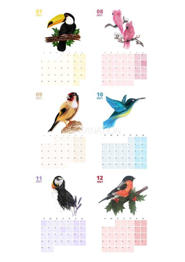 Każdy miesiąc posiada inny gatunek ptaków.