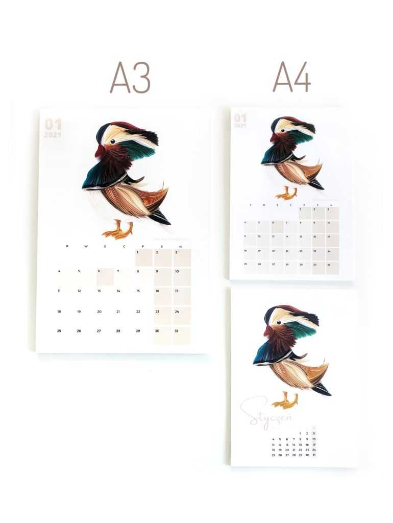 Kalendarza w dwóch rozmiarach i wariantach.