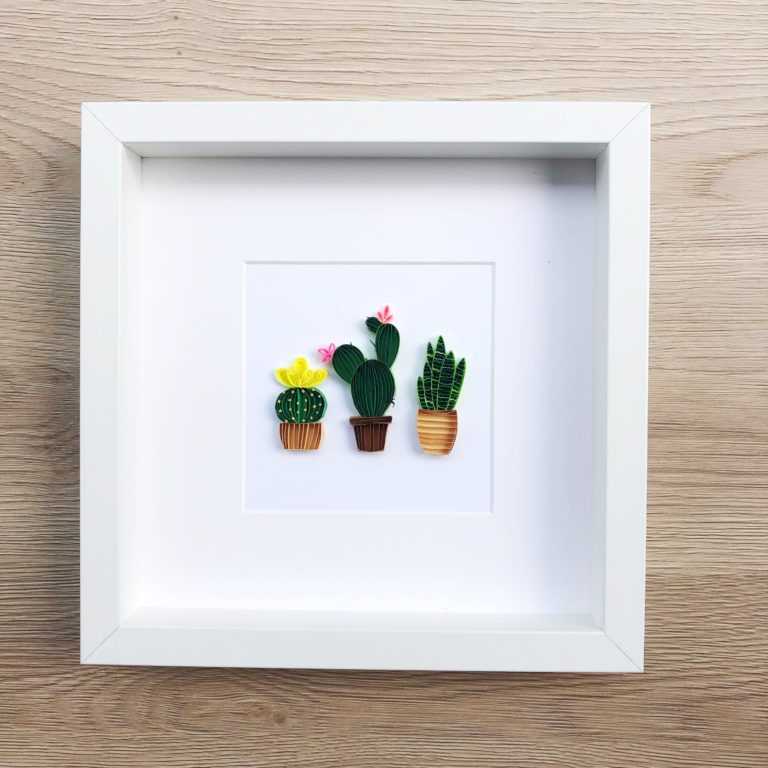 z kaktusami i roślinkami.